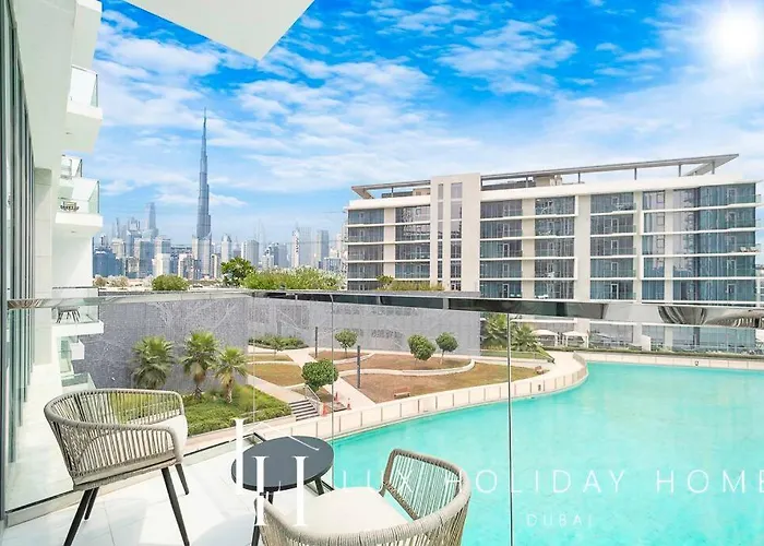 Disfruta de tus vacaciones en Dubái en el Lux The Burj Khalifa Lagoon View Suite 2 Dubái. Ideal para quienes buscan una experiencia auténtica, está situado a 4 km de la Fuente de Dubái y a unos 10 minutos en coche de las Carreras de camellos Dubai.